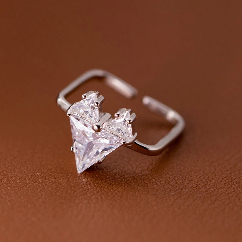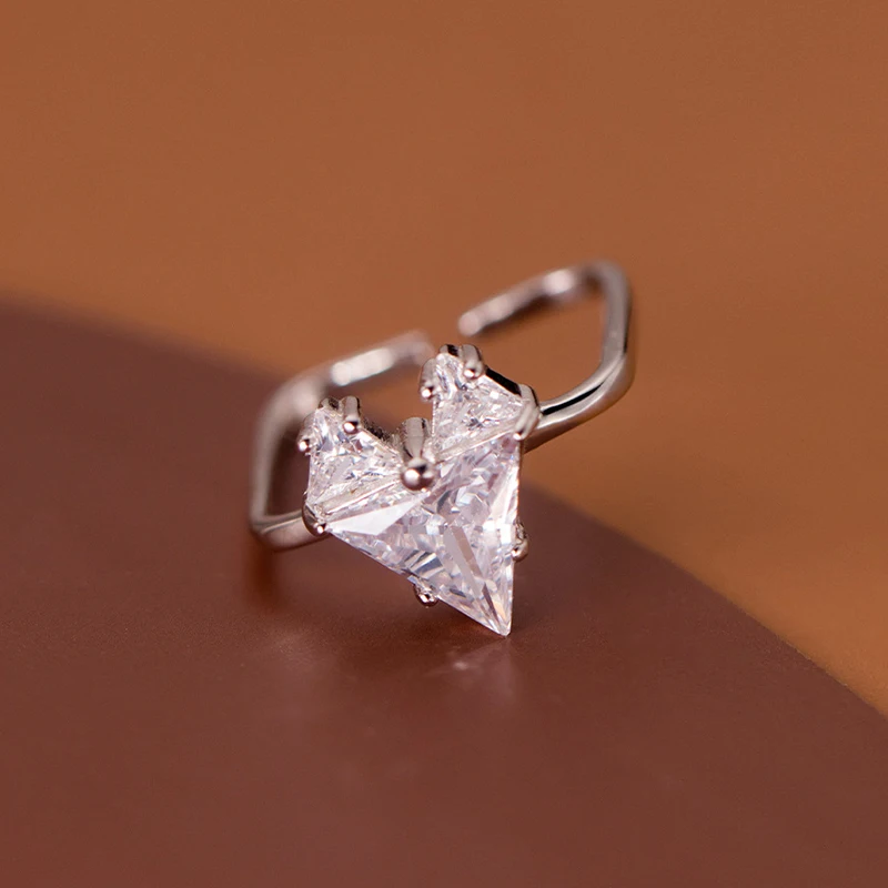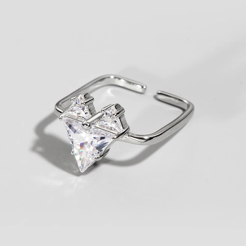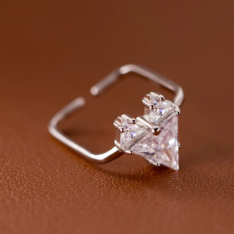 Modian 925 Sterling Silver Sparkling Clear Zircon Heart Geometric Adjustable Ring Size 6-8 Rings For Women Trendy Fine Jewelry
