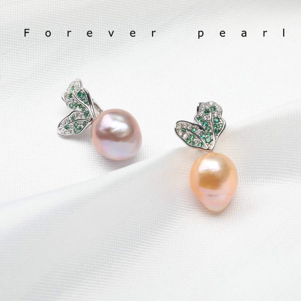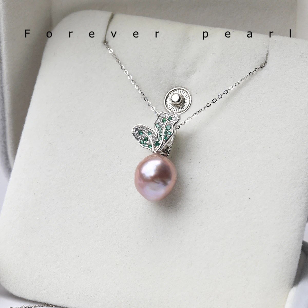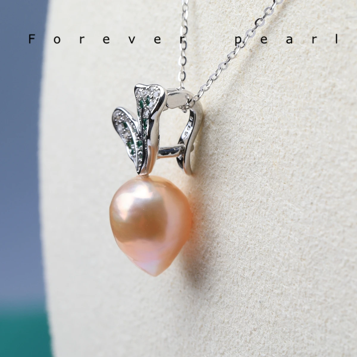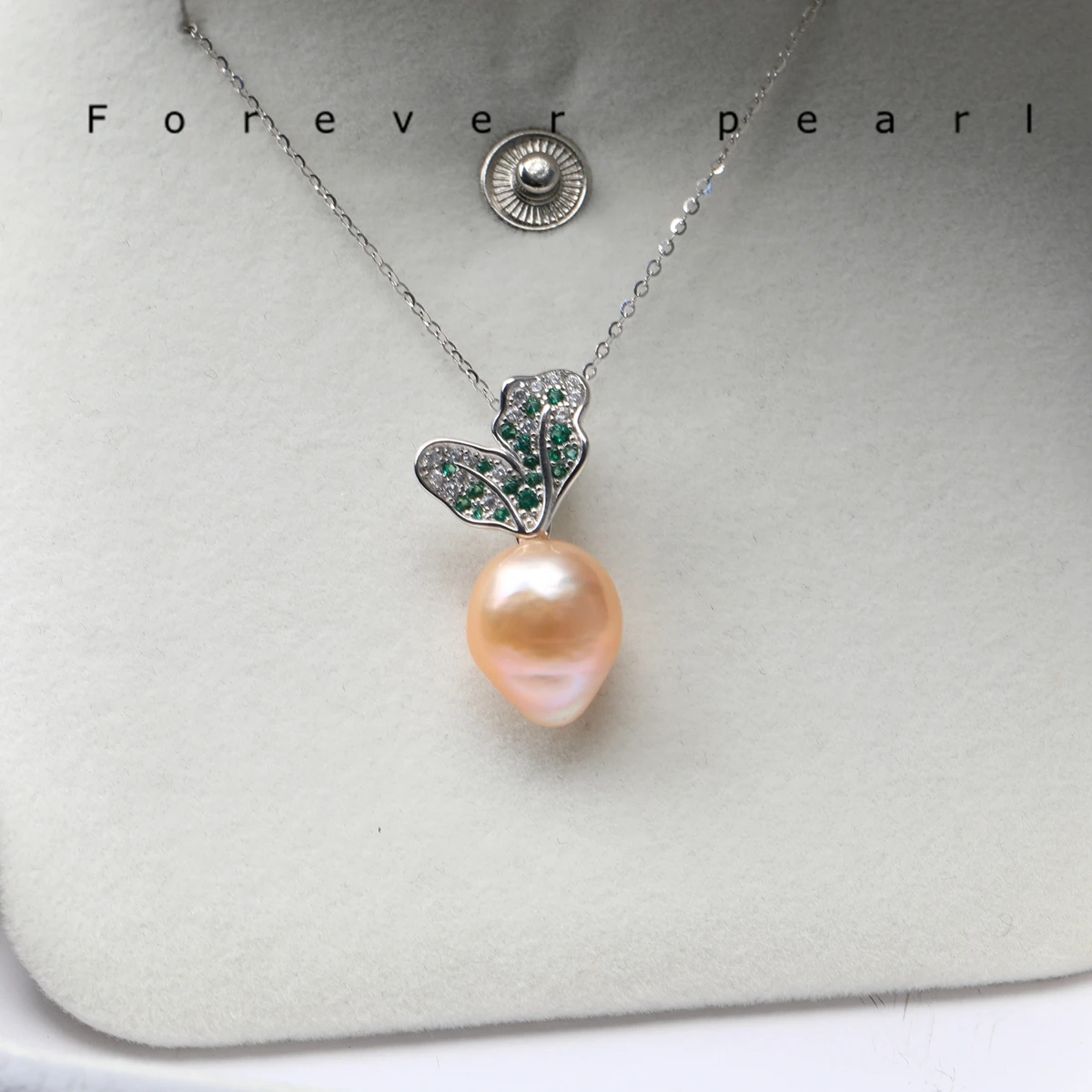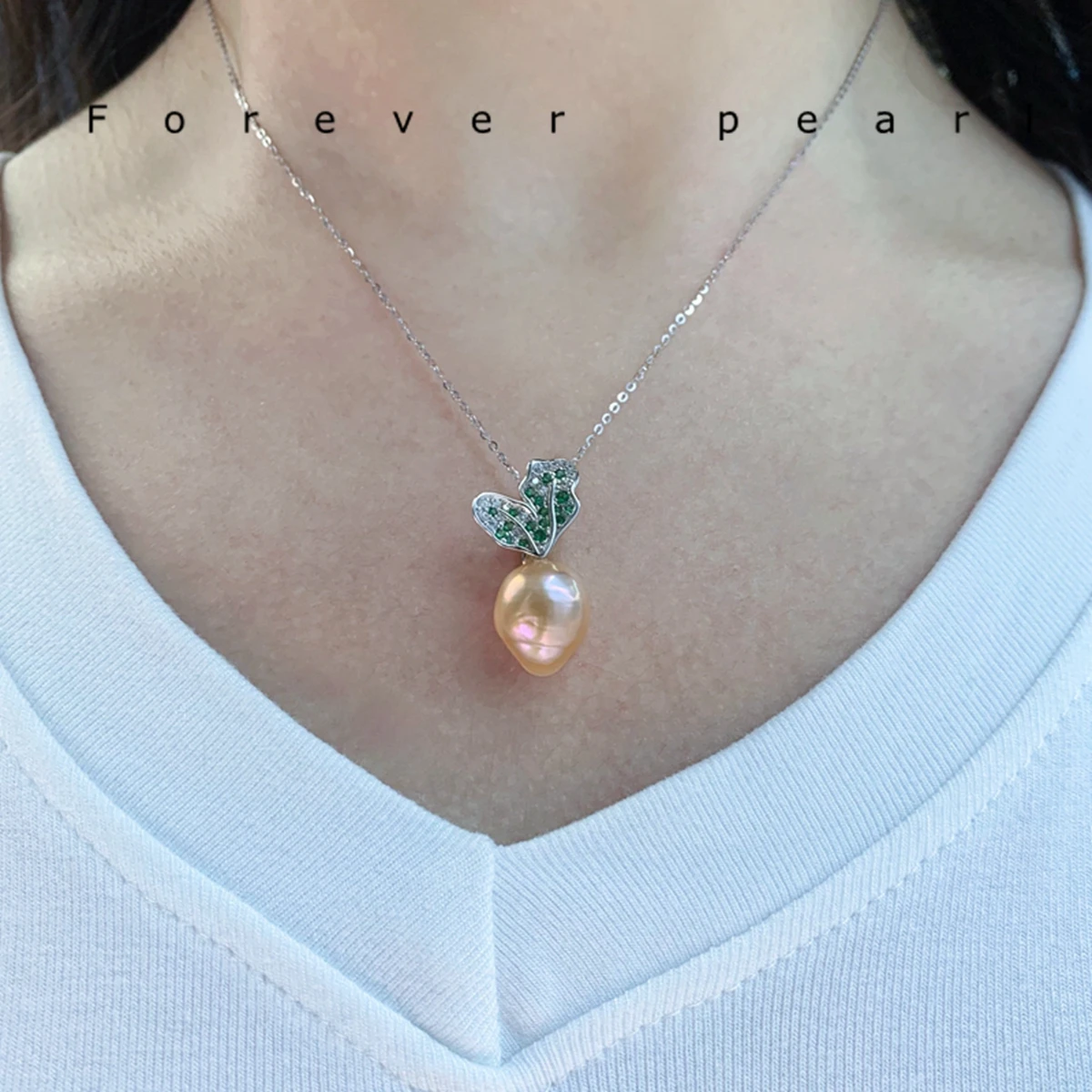Natural Freshwater Droplet Baroque Pearl Exquisite Radish S925 Sterling Silver Inlaid with Green Zircon Universal Buckle Pendant