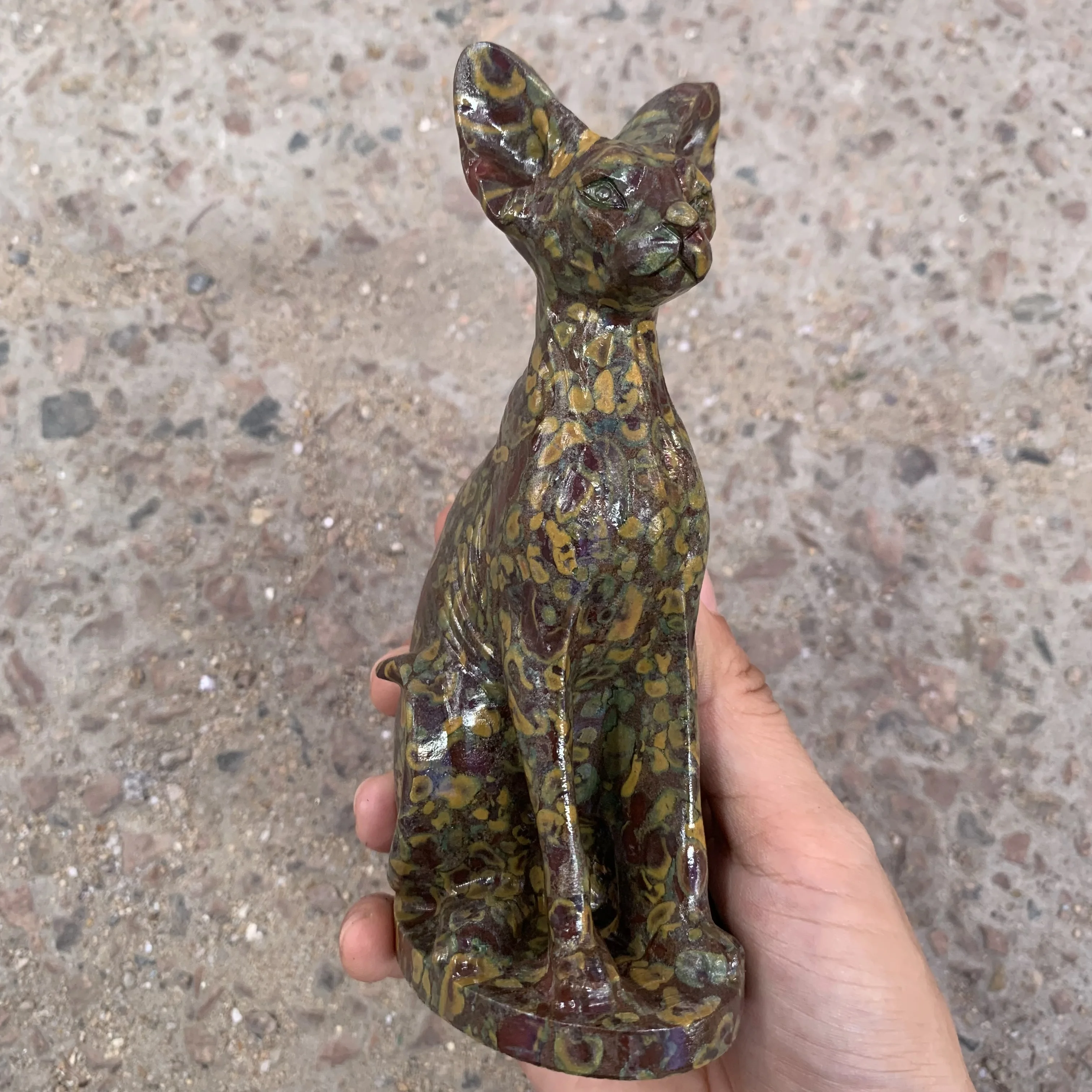 Natural Mineral Egyptian Bastet Sculpture crystal cat Desk Decor Collectible Figurine