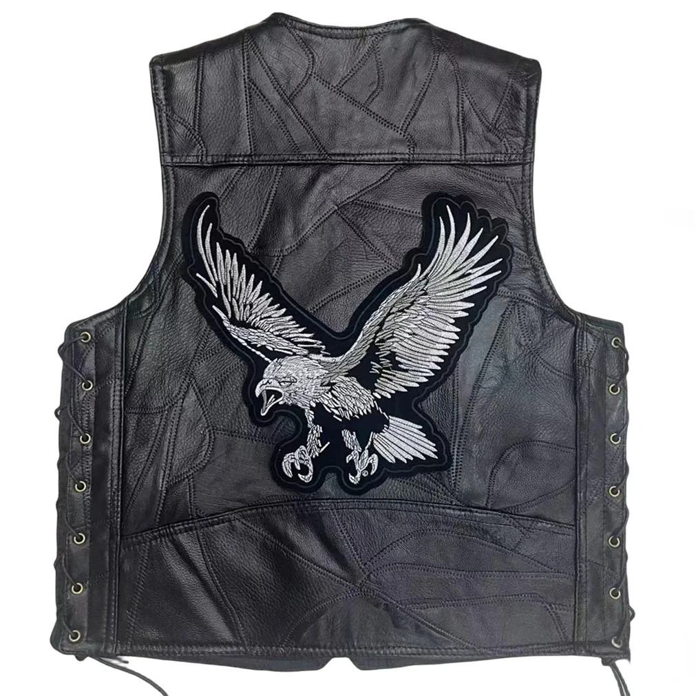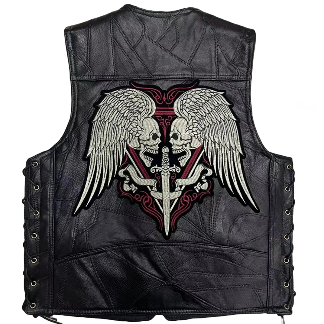 New Motorcycle Riding Leather Vest Embroidery Moto Sleeveless Jacket Waistcoat Street Fashion Biker Vests Punk Veste for Man
