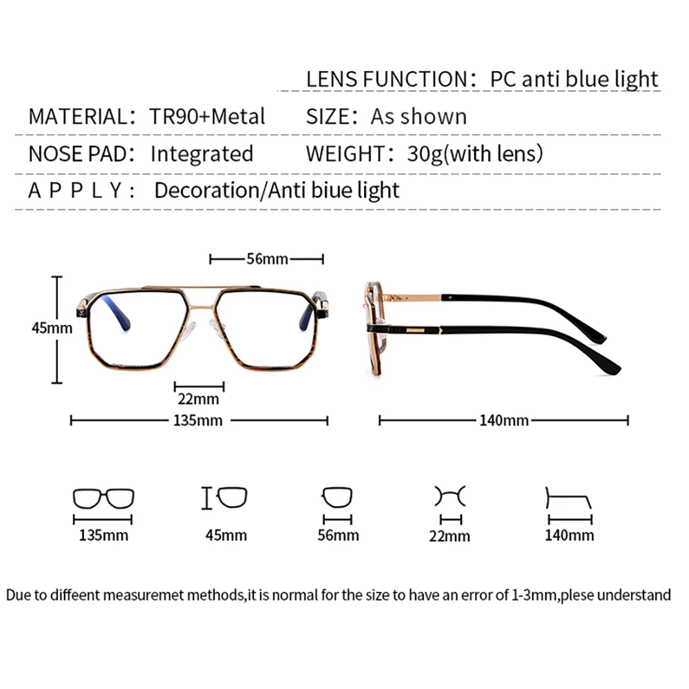 Get ready to save big with a fantastic 10% discount on Peekaboo big square glasses anti blue light TR90 clear lens fashion glasses frame for men metal gold black grey male gift items. Elevate your Apparel Accessories with exquisite selections at a great value. This limited-time offer allows you to indulge in high-quality Eyewear & Accessories while enjoying considerable savings. Shop now and elevate your collection!