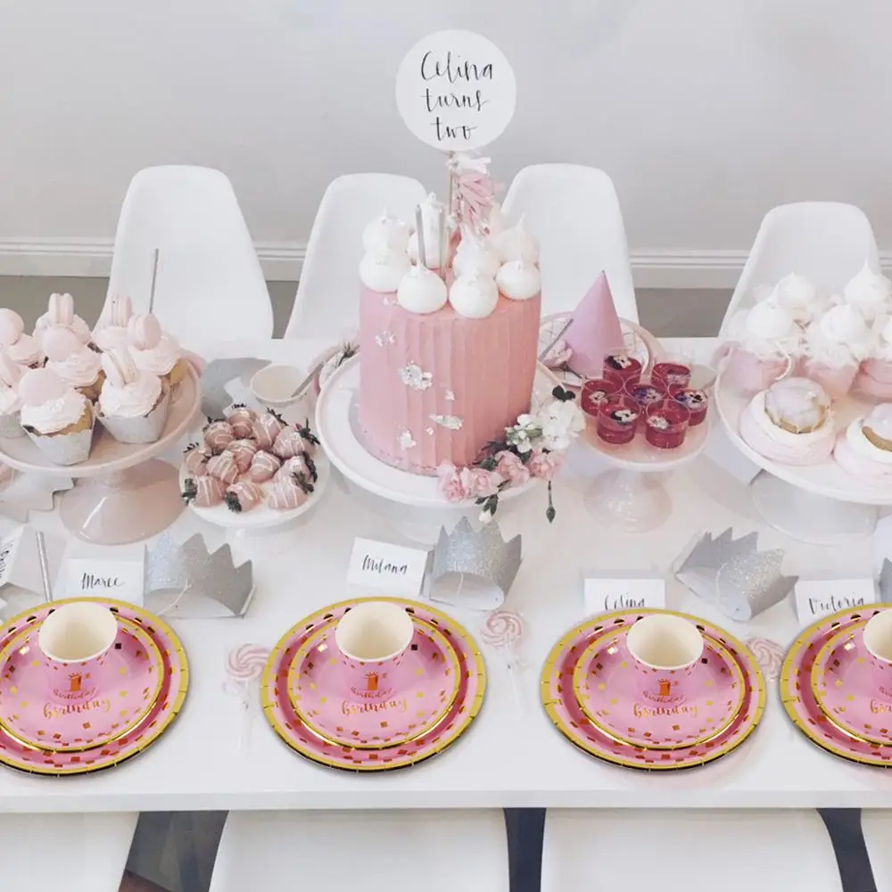 Pink One Birthday Crown Baby One Year Old Birthday Cheer First Birthday Rose Baby 1st Happy Birthday Party Decor Kids Girl Balon
