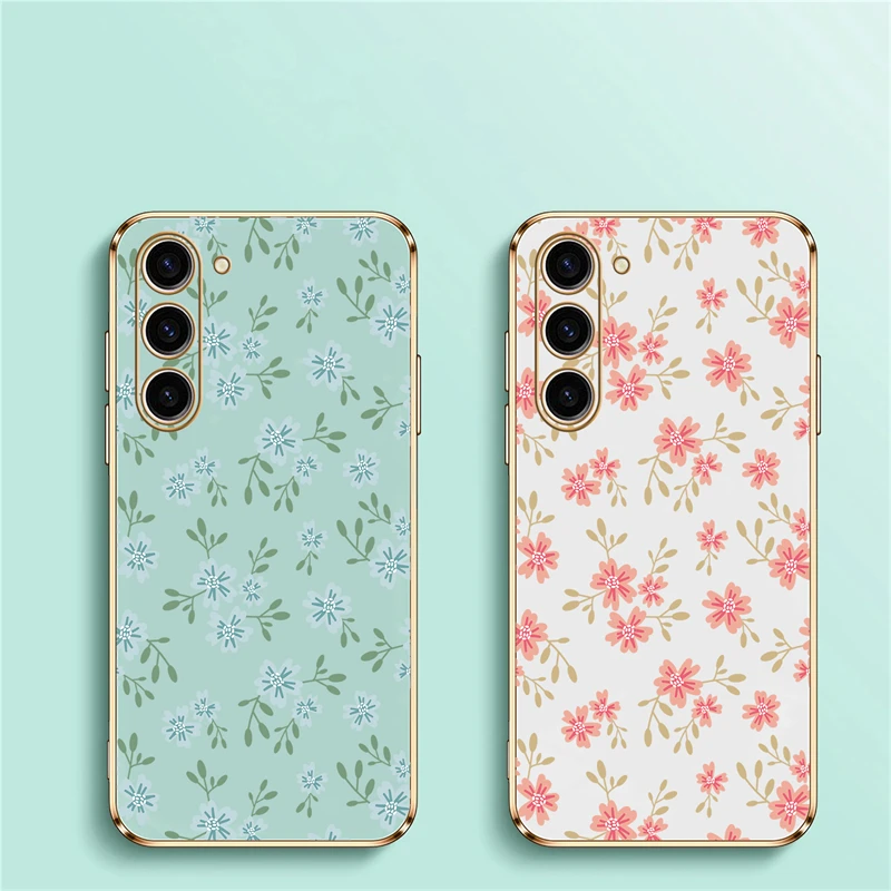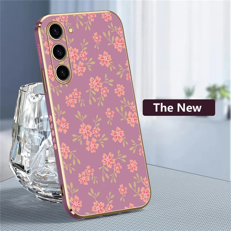 S24 Floral Case For Samsung Galaxy S23 Ultra S22 Plus S23 FE S20 S21 S10 Plating Silicone Soft Shockproof Back Cover Coque