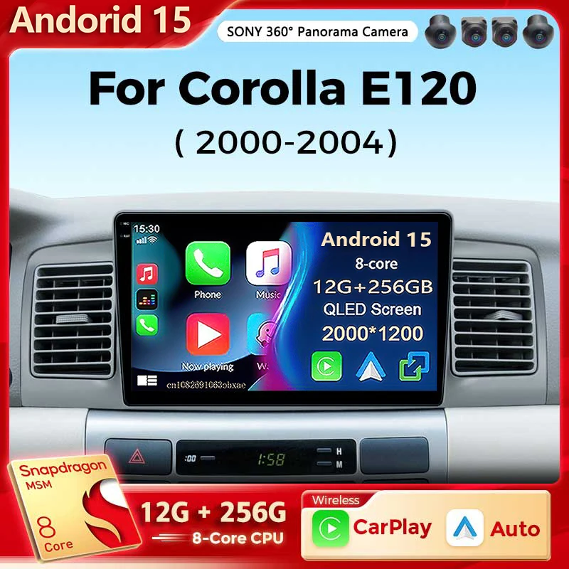 SEPTON 8+128G Car Radio Stereo Player for Toyota Corolla E120 E130 2000-2007 2Din GPS Android System Vehicle Autoradio DSP