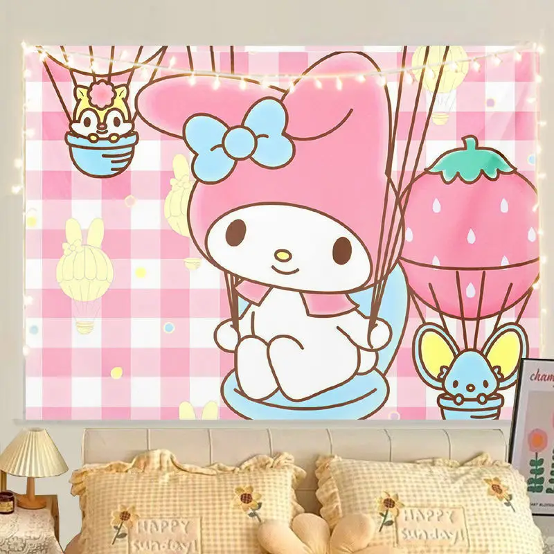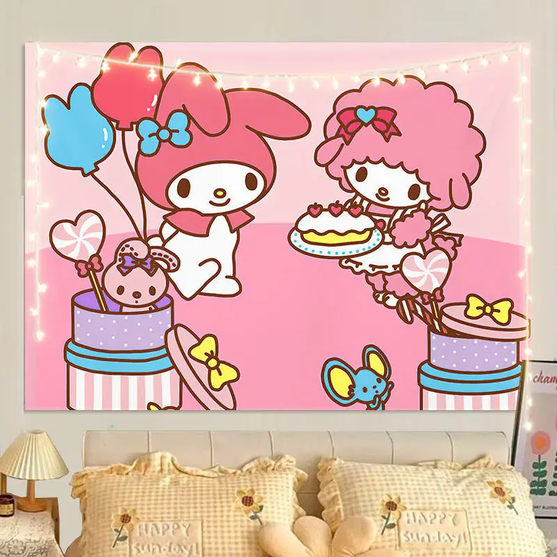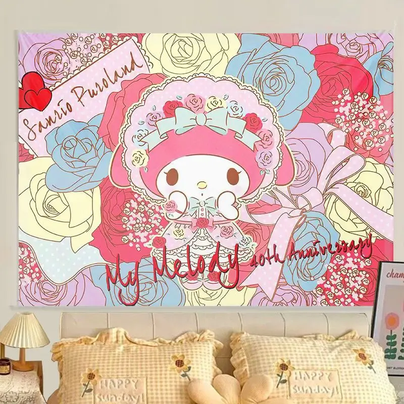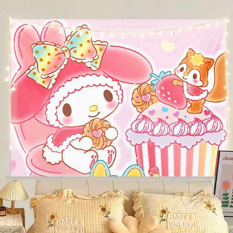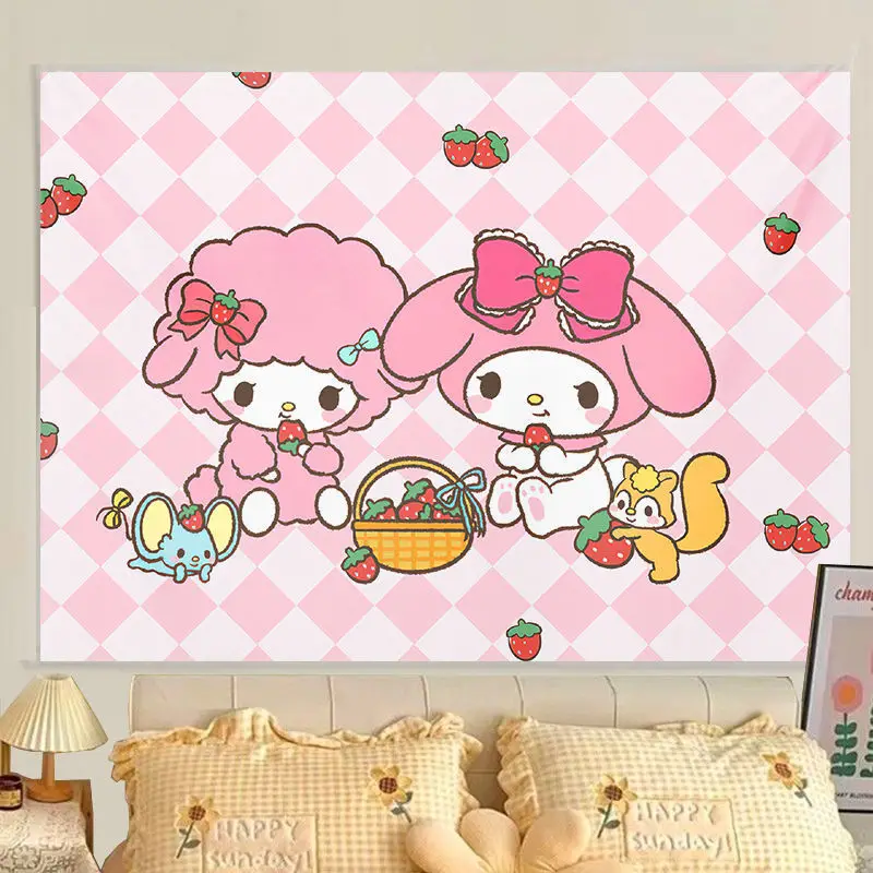 Sanrio Cartoon Hanging Cloth for Girls, Melody Background Cloth for Bedroom, Cute Wall Cloth for Girls, Sanrio and Kulomi
