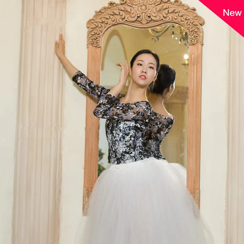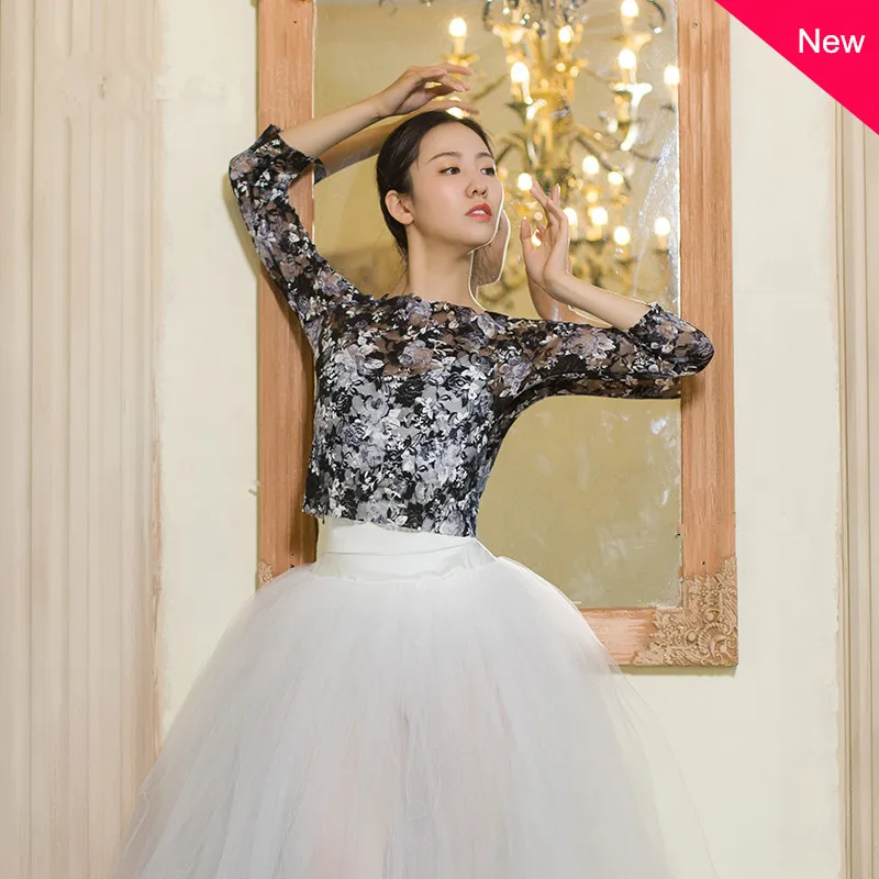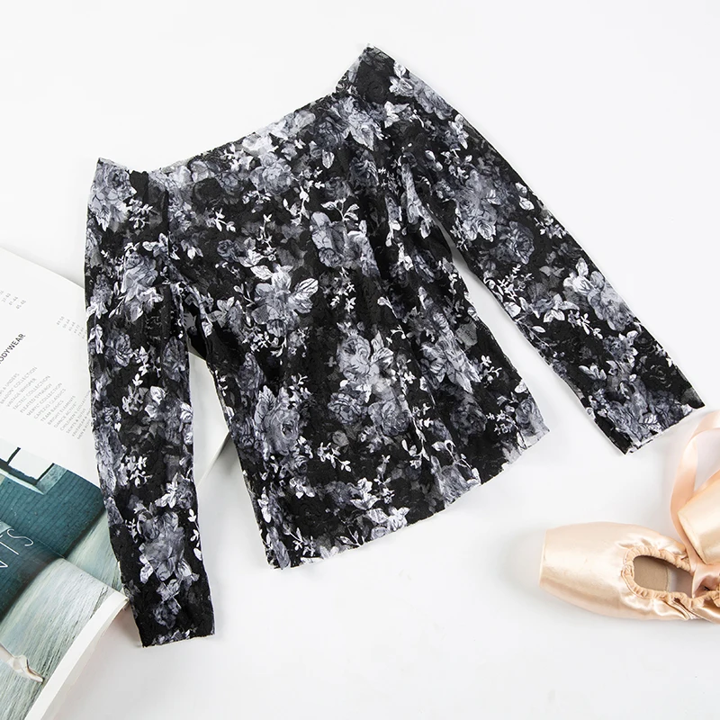 Star Same Style Practice Suit Printed Mesh Blouse Gauze Classical Jumpsuit Ballet Tiara Dance Top