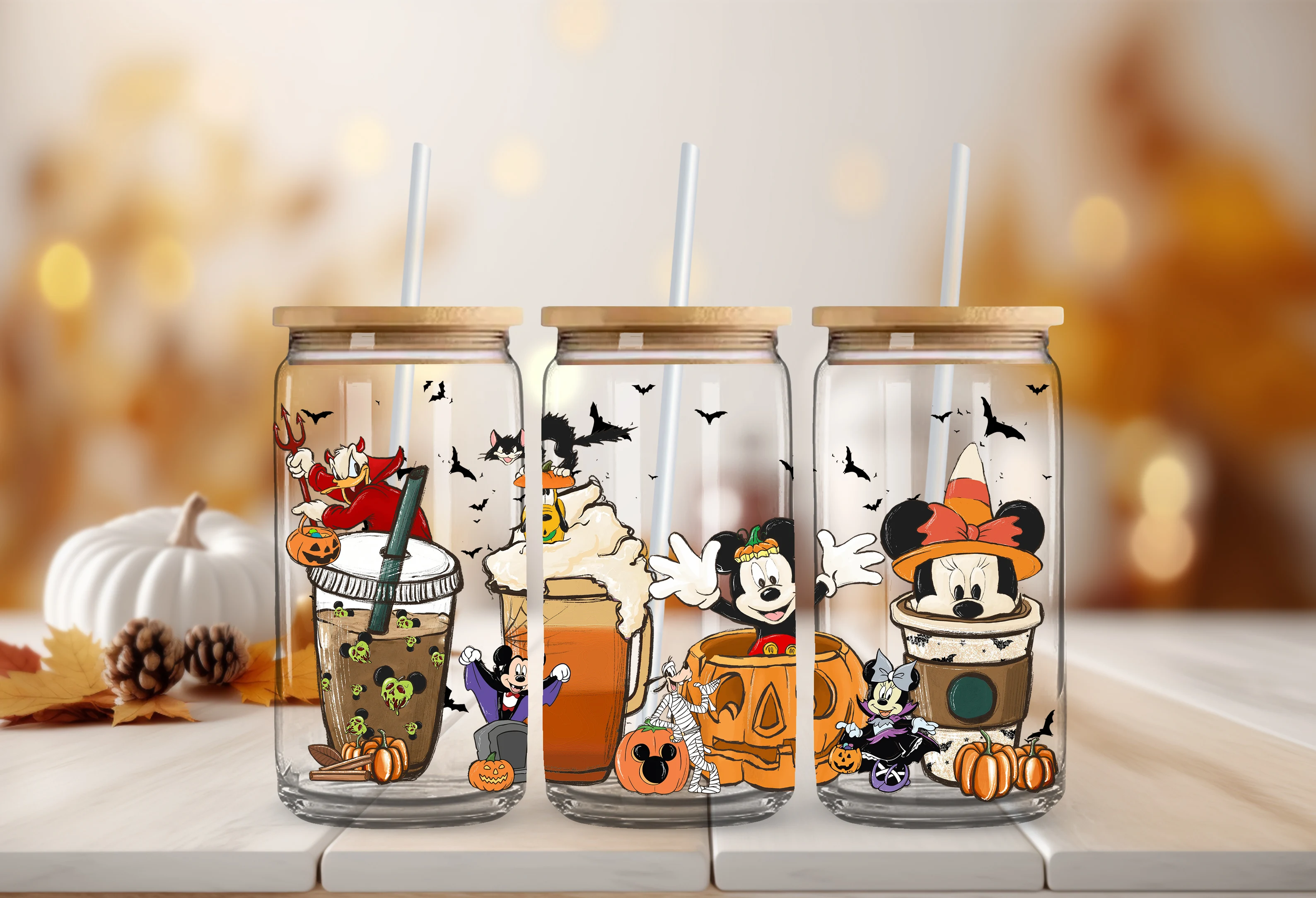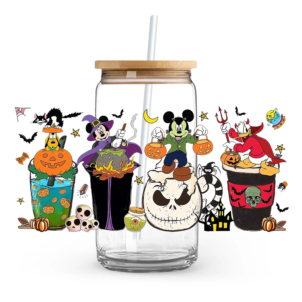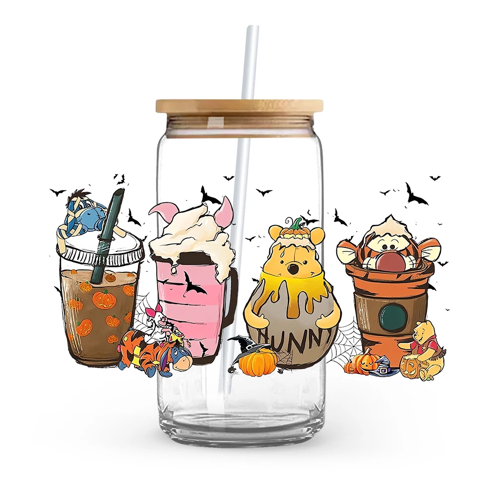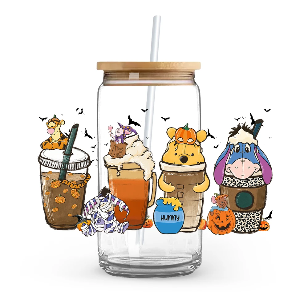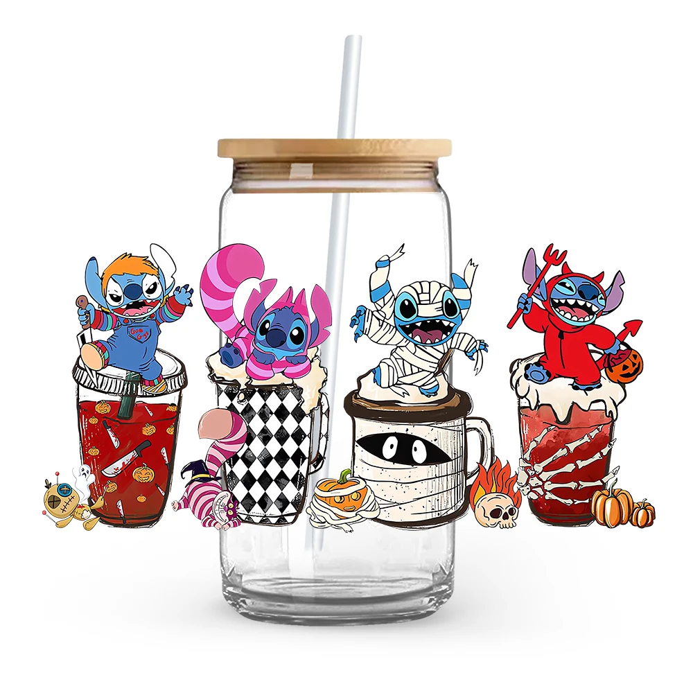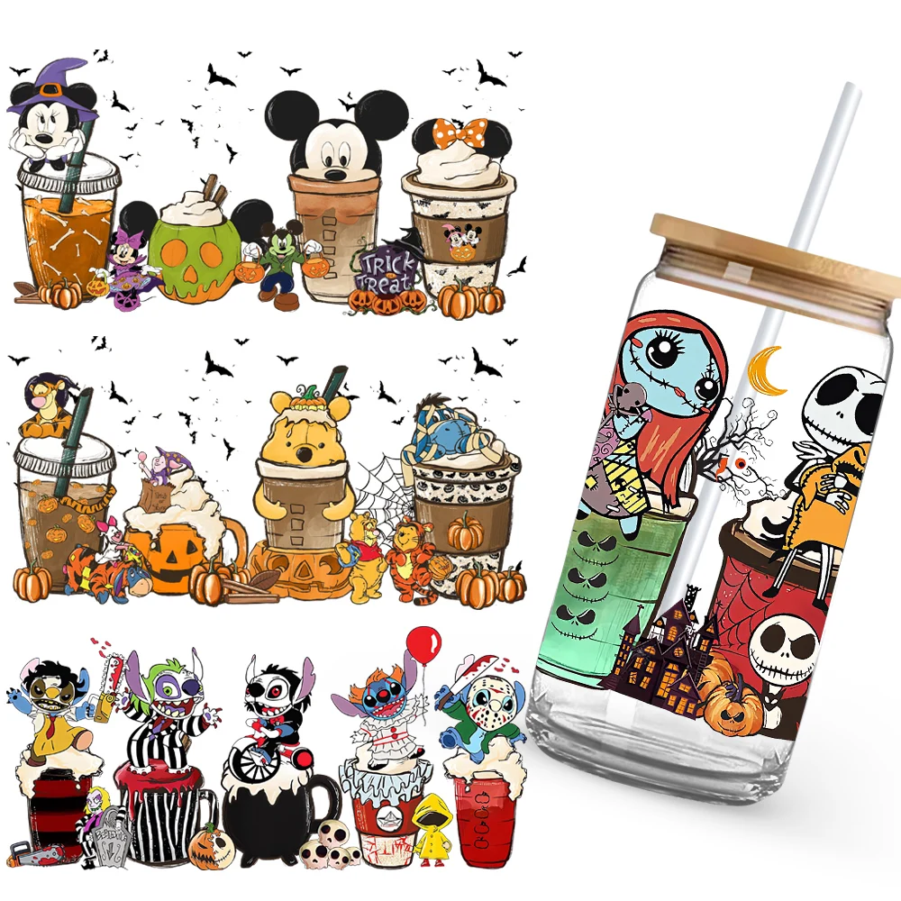 Stitch Winnie the Pooh Mickey Toy Story Halloween Glass Cup Decals UV DTF Personalized Cup Decals DIY Decoration