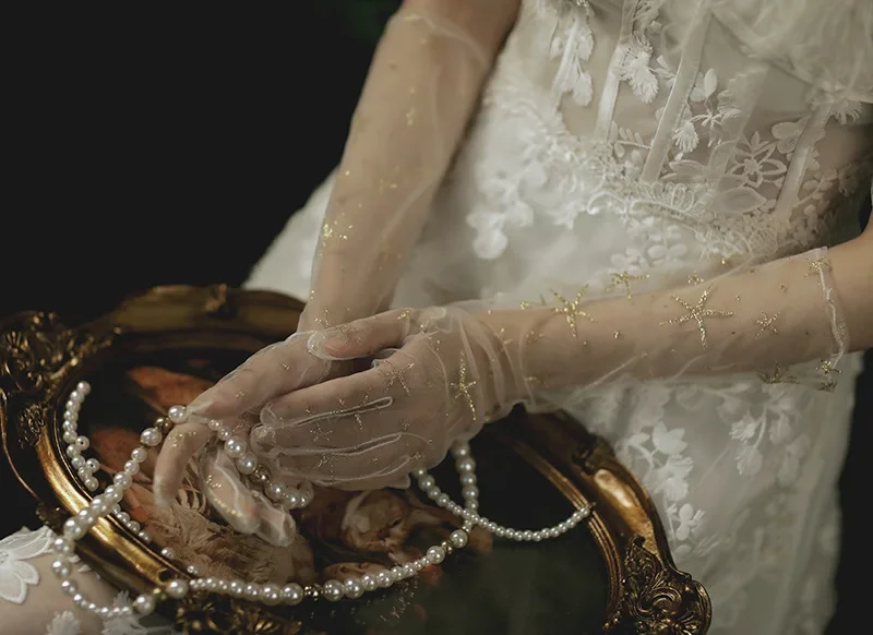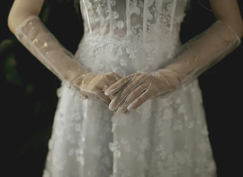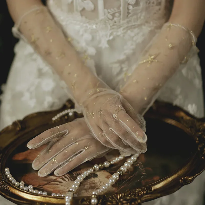 Tulle Eblow Length Gloves with Gold Star Women 1920s Halloween Costume Adult Size Cosplay Dress Gloves