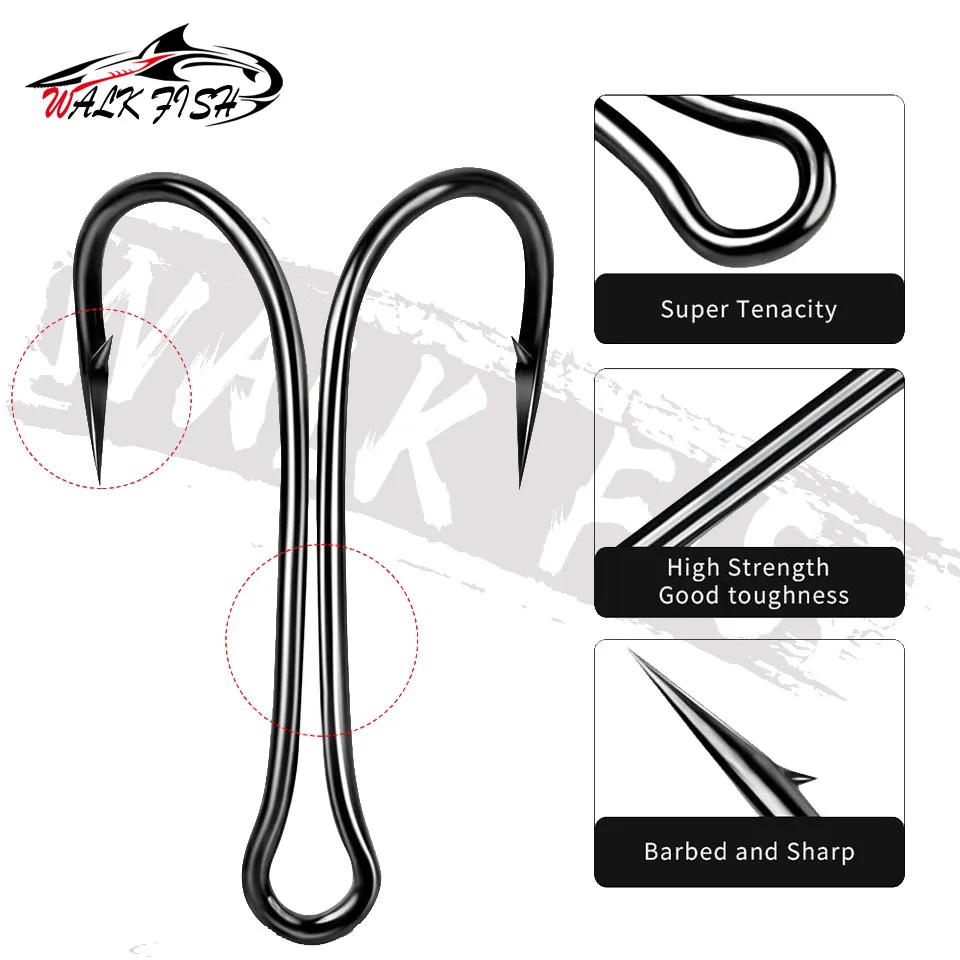 WALK FISH 50PCS Long Shank Double Hook Weedless Fishing hook Fly Tying Duple Hook for Jig Bass Fish Hook fishing For Soft Lure