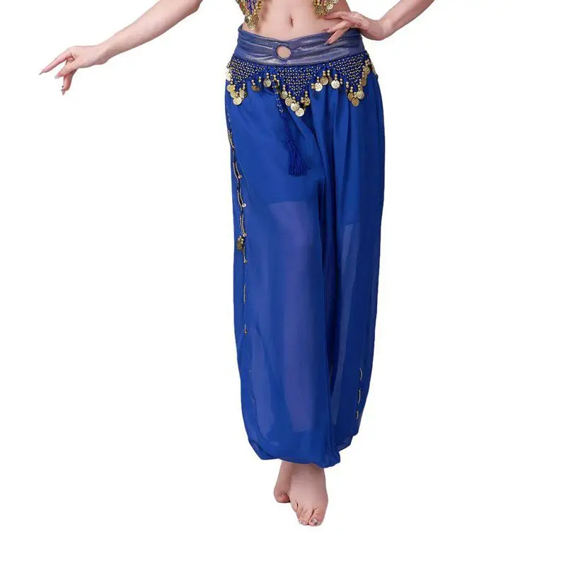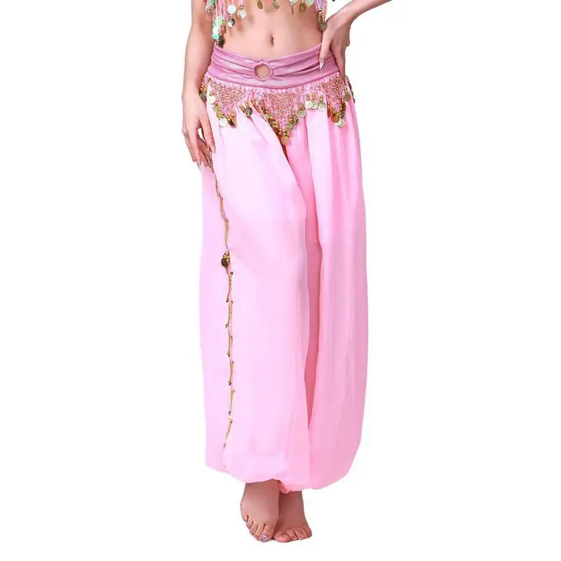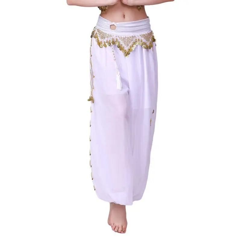 Womens Belly Dance Harem Pants Lantern Shiny Sequins Pants Adult Belly Dance Chiffon Practice Trousers Costume Highlights Pants