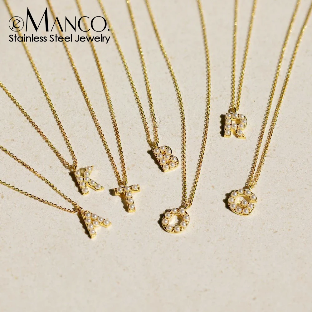 eManco Imitation Pearl Initial Necklace Stainless Steel Name Customized Necklace Birthday Gift