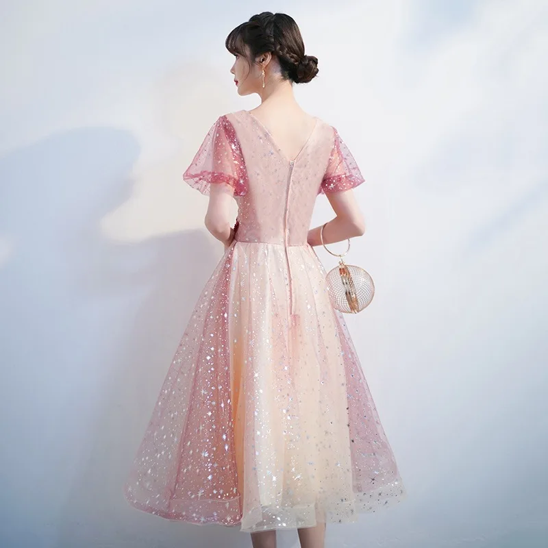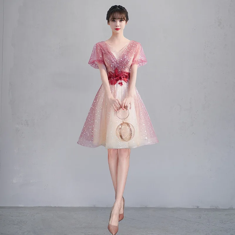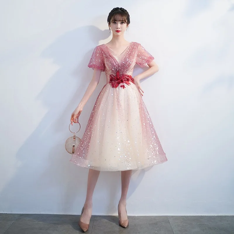 gala Starry Sky New Summer Host Student Small Red Bridesmaid Evening Dress for Toasting