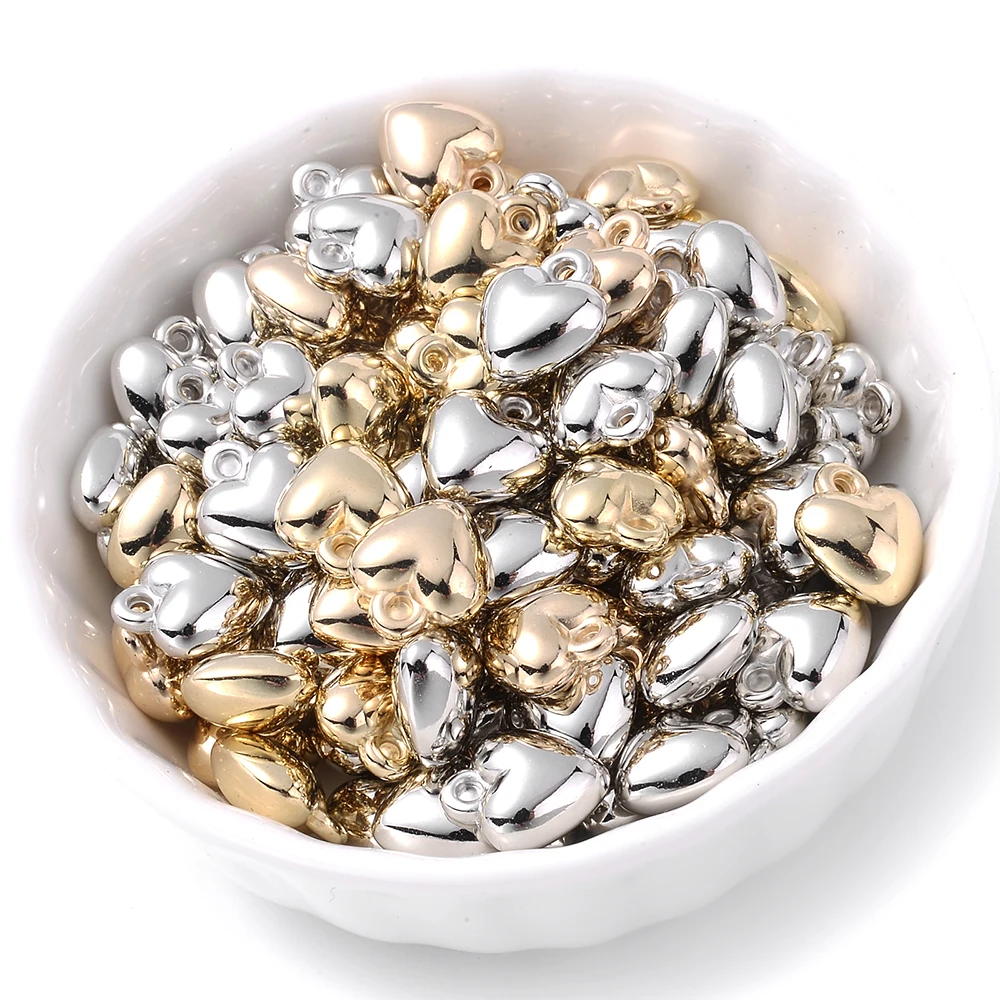 iYOE 50pcs 6-18mm Gold Color Heart Charms CCB Plastic Spacer Beads For Making Bracelet Earring Necklace Pendant DIY Jewelry
